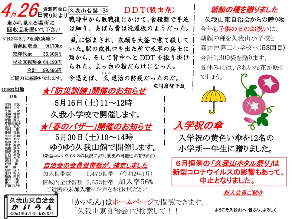 入学祝の黄色い傘、朝顔の種を贈りました。今年の
