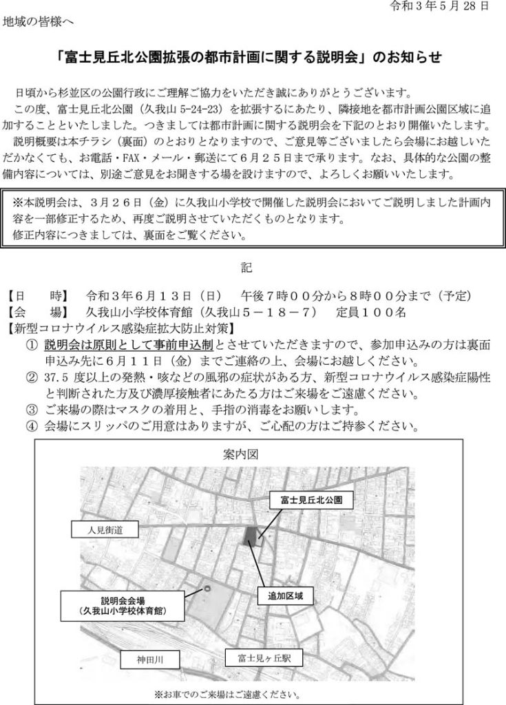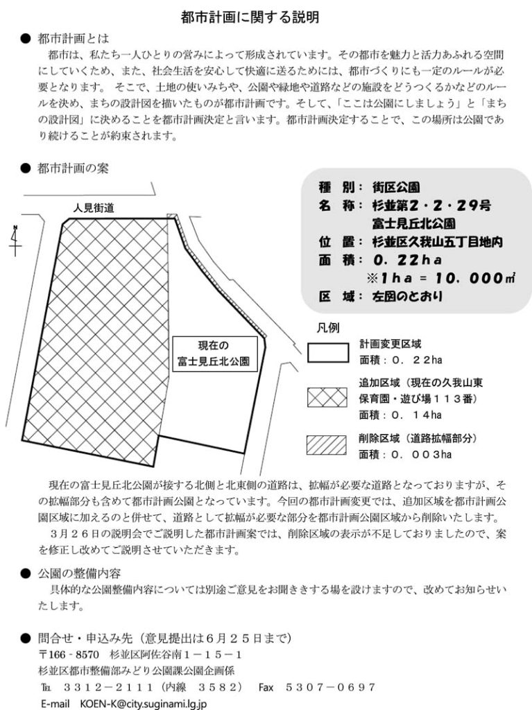 2回目「富士見丘北公園拡張」お知らせ、説明会