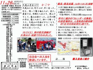 | 平成30年11月3日 | 震災救護所運営訓練講習会へ久我小救護所役員約30名が参加(地域住民の参加なし) |