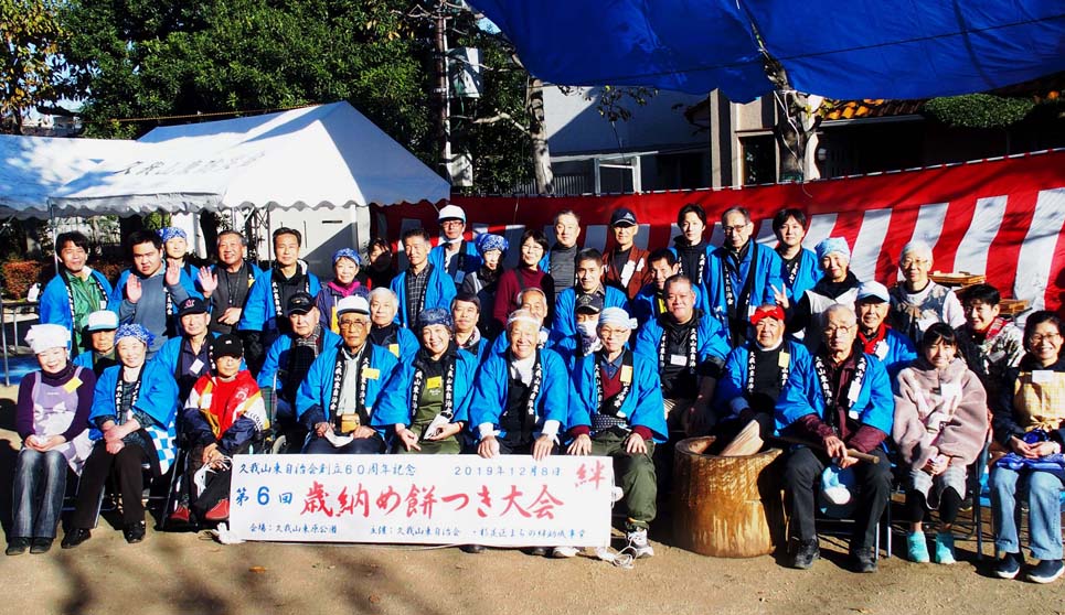 餅つき大会開催履歴 2024年11月30日 最終更新日時 : 2025年5月8日 KH01 久我山伝統の餅つき 令和元年12月8日開催 平成30年12月23日開催 スクロールできます 令和6年11月30日餅つき大会を継承して、久我山イベント「神田川さんぽ」を行います。令和5年コロナ・インフルエンザ感染防止の為、中止しました。令和4年コロナ感染防止の為、中止しました。令和3年コロナ感染防止の為、中止しました。令和2年コロナ感染防止の為、中止しました。令和元年12月8日第6回 自治会創立60周年記念年納め餅つき大会250名以上参加(久我山東原公園)平成30年12月23日第5回 年納め餅つき大会250名以上参加(久我山東原公園)平成29年12月23日第4回 年納め餅つき大会270名以上参加(久我山東原公園)平成28年12月23日第3回 年納め餅つき大会250名以上参加(久我山東原公園)平成27年12月23日第2回 年納め餅つき大会300名以上参加(久我山東原公園)平成26年12月23日第1回 年納め餅つき大会360名以上参加(久我山東原公園)