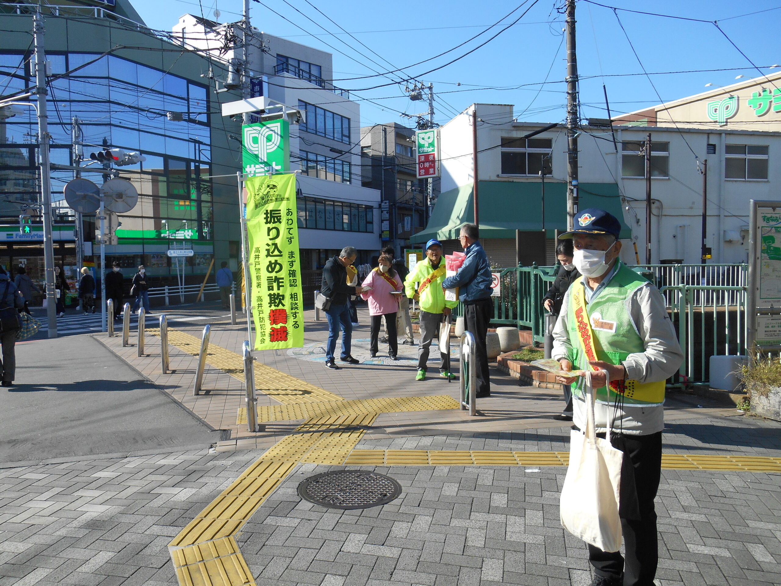 杉並区で詐欺電話が多発!ターゲットは高齢者だけではありません! 2025年11月14日 最終更新日時 : 2025年11月16日 KH01 11月14日、特殊詐欺撲滅にむけた防犯キャンペーンを実施しました 自治会の皆さんによるキャンぺーンの様子 11月14日(金)午前9時40分から久我山駅頭で特殊詐欺撲滅にむけた防犯キャンペーンを実施しました。今、久我山地域を含め杉並区内では特殊詐欺の電話が多発しています。警察官を語ったり、家族になりすますオレオレ詐欺など、たくみに相手をだます悪質なケースが後を絶ちません。自分だけは絶対大丈夫だと思わず、まずは疑ってかかりましょう!